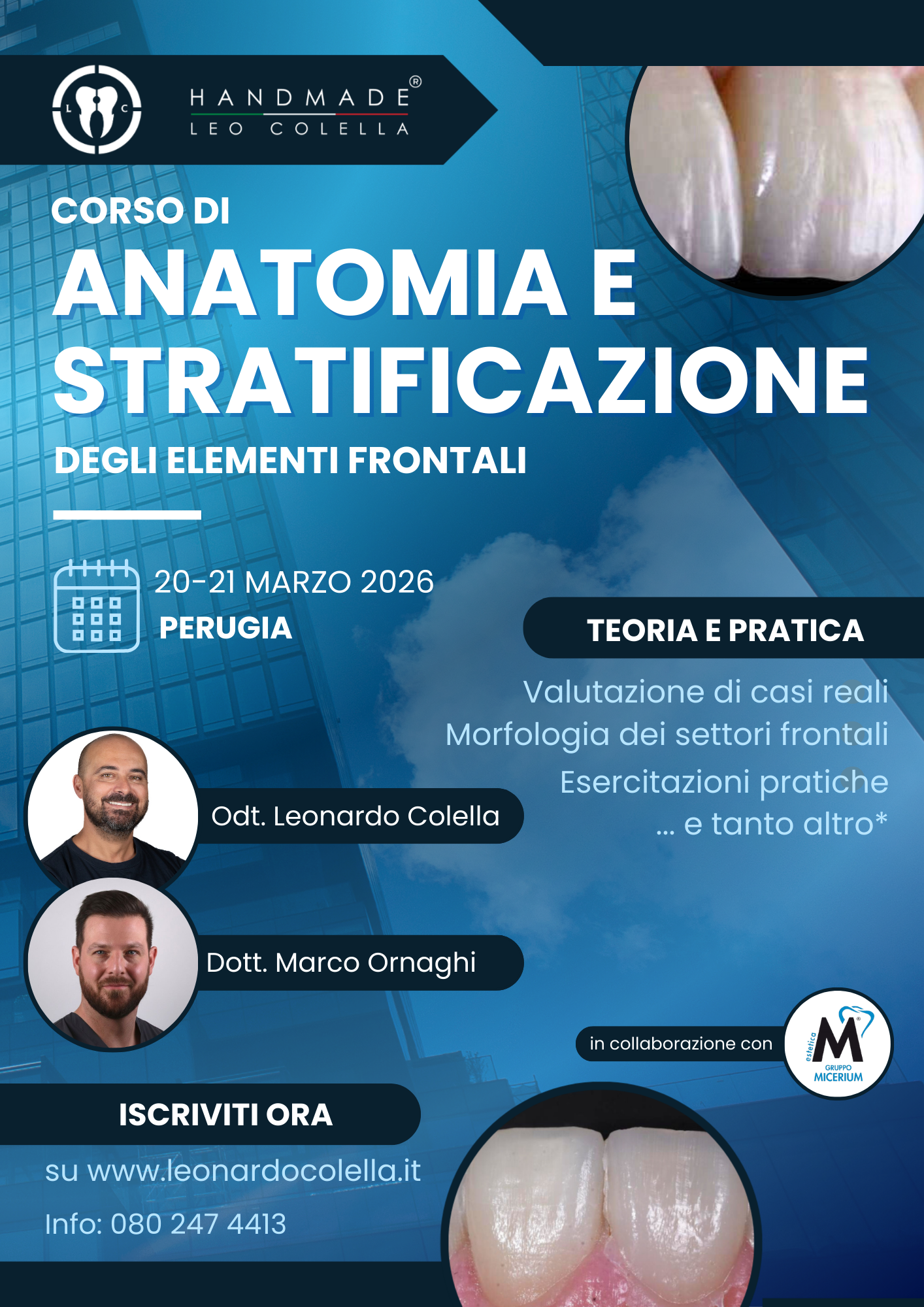 Elenco dei corsi dell’Odt. Leonardo Colella, socio fondatore dell’Accademia Internazionale di Modellazione Dentale, per approfondire lo studio della forma dentale e la stratificazione dei compositi.